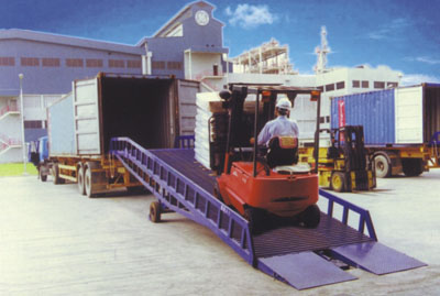 移動式液壓登車橋是與叉車配合使用的貨物裝 卸專用輔助設備。有了它,叉車能直接從地面駛入汽車車廂內部進行 批量裝卸作業(yè)。產品采用人工液壓動力,不需接動力電源。只需單人操作,即可實現(xiàn)貨物的安全快速裝卸。它可使您減少大量勞力,成倍提高裝卸作業(yè)效率,加快物料流通速度,獲取更大經濟效益。